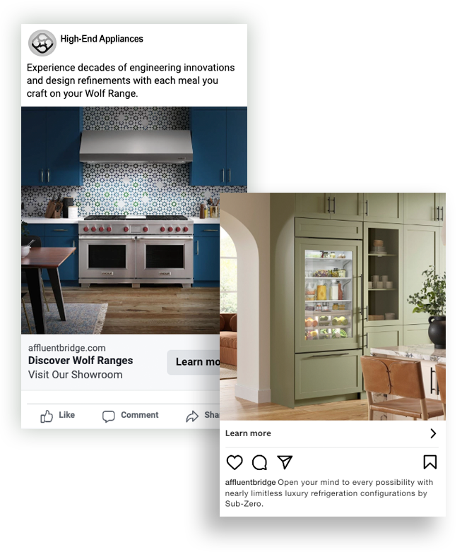 Every campaign’s creative and content are devised to pique the interest of high-end consumers. Ads are designed to create a sense of curiosity about how your appliances will enhance a homeowner’s affluent lifestyle.